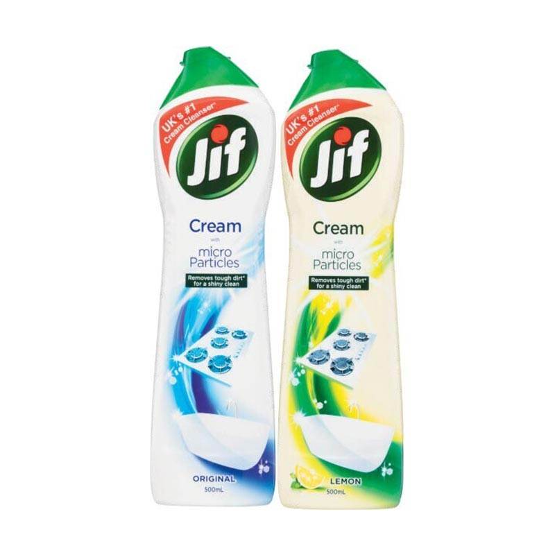 Jif Cream with Micro-particles -The best Jif cream ever. Removes the most engrained dirt (tested on model kitchen and bathroom dirt and surfaces achieving the complete soil removal) for beautifully clean surfaces, more easily than ever. It penetrates and removes completely the most stubborn dirt, like encrusted grease, burnt-on food, limescale; so you can enjoy a perfect shiny clean.